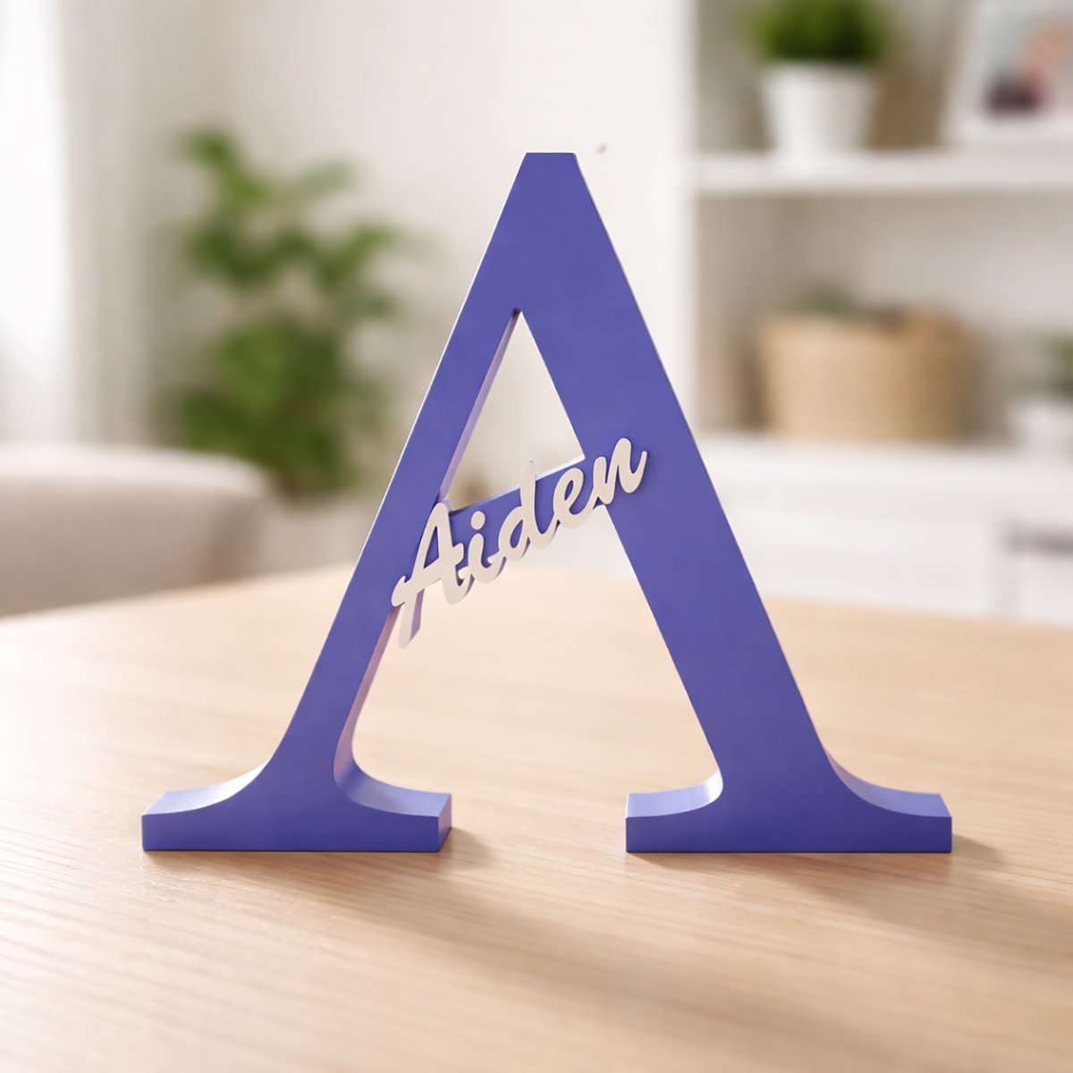 Designed to combine a bold initial with personalised name text. This modern, eye-catching piece features a large alphabet letter as the base, layered with a customised name for a stylish and premium look.